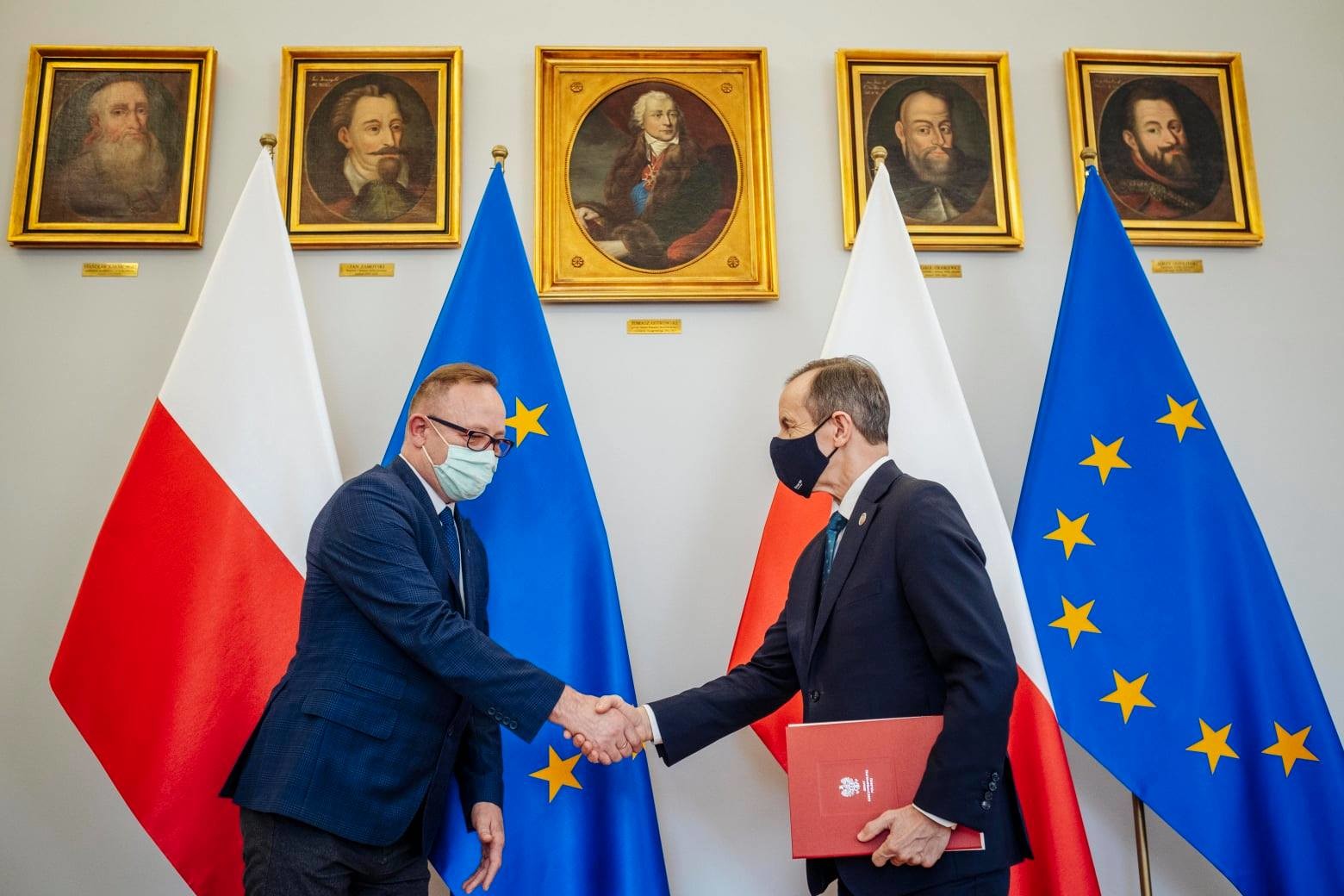 Marszałek Senatu prof. Tomasz Grodzki na dzisiejszym spotkaniu przekazał na ręce Prezesa Helskiej Fundacji Sapere Aude, nagrodę  Marszałka Senatu RP w XVI. edycji konkursu o Nagrodę Bursztynowego Mieczyka im. Macieja Płażyńskiego.