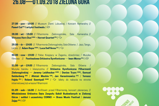 zespoły: CORNO Brass Ensemble, Hornet Quartet, CORNO Brass Ensemble, Orkiestra Filharmonii Zielonogórskiej pod dyrekcją Norberta Twórczyńskiego