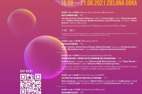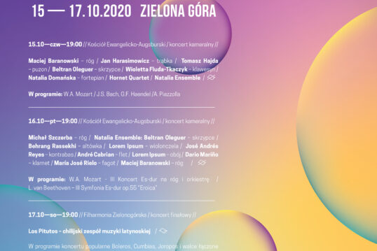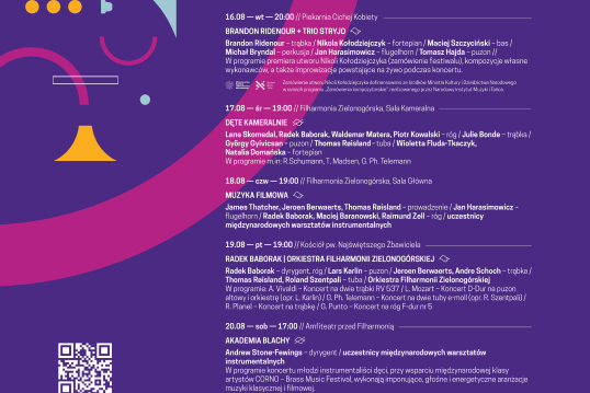 zespoły: Trio Stryjo, Hornet Quartet, CORNO Brass Ensemble, Orkiestra Filharmonii Zielonogórskiej pod kierunkiem Radka Baboraka