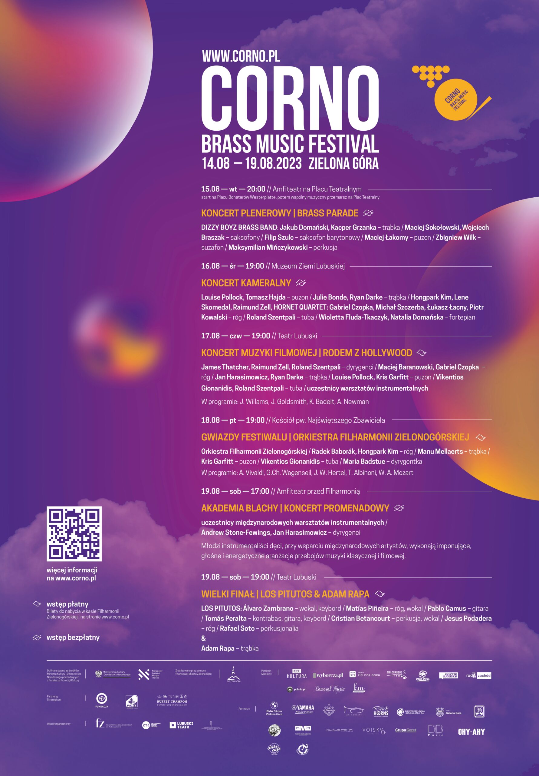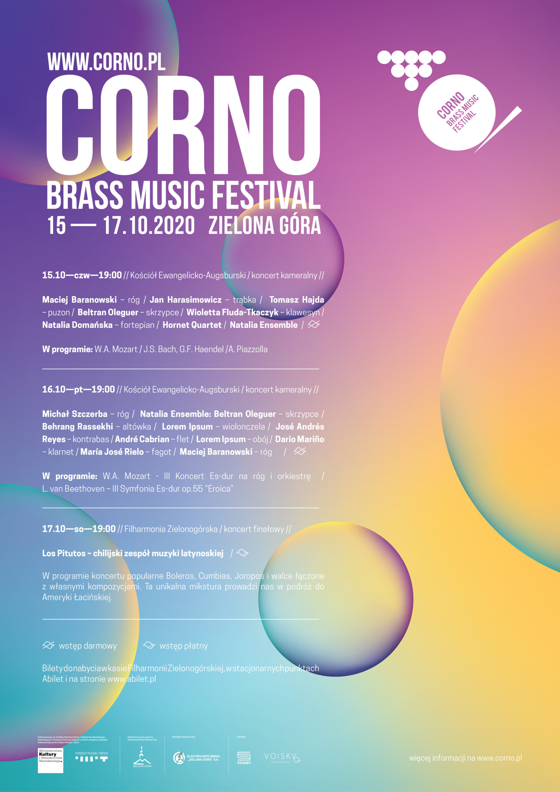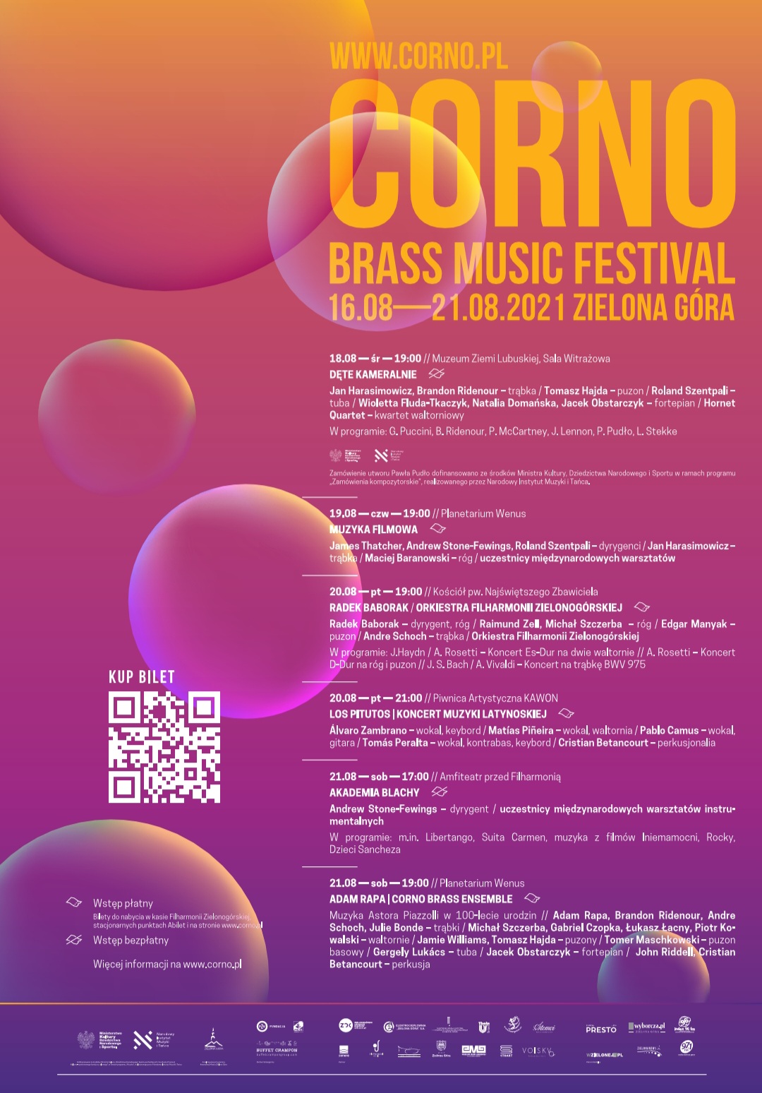 zespoły: Los Pitutos, Hornet Quartet, Orkiestra Filharmonii Zielonogórskiej pod dyrekcją Radka Baboraka, CORNO Brass Ensemble