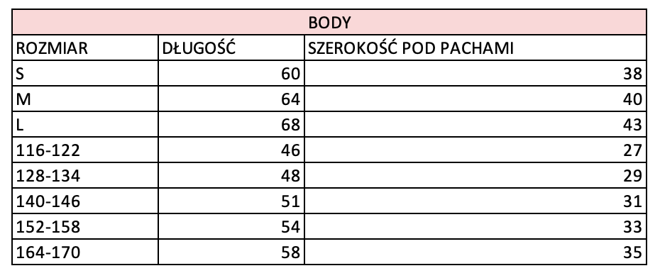ilość Body bez rękawków