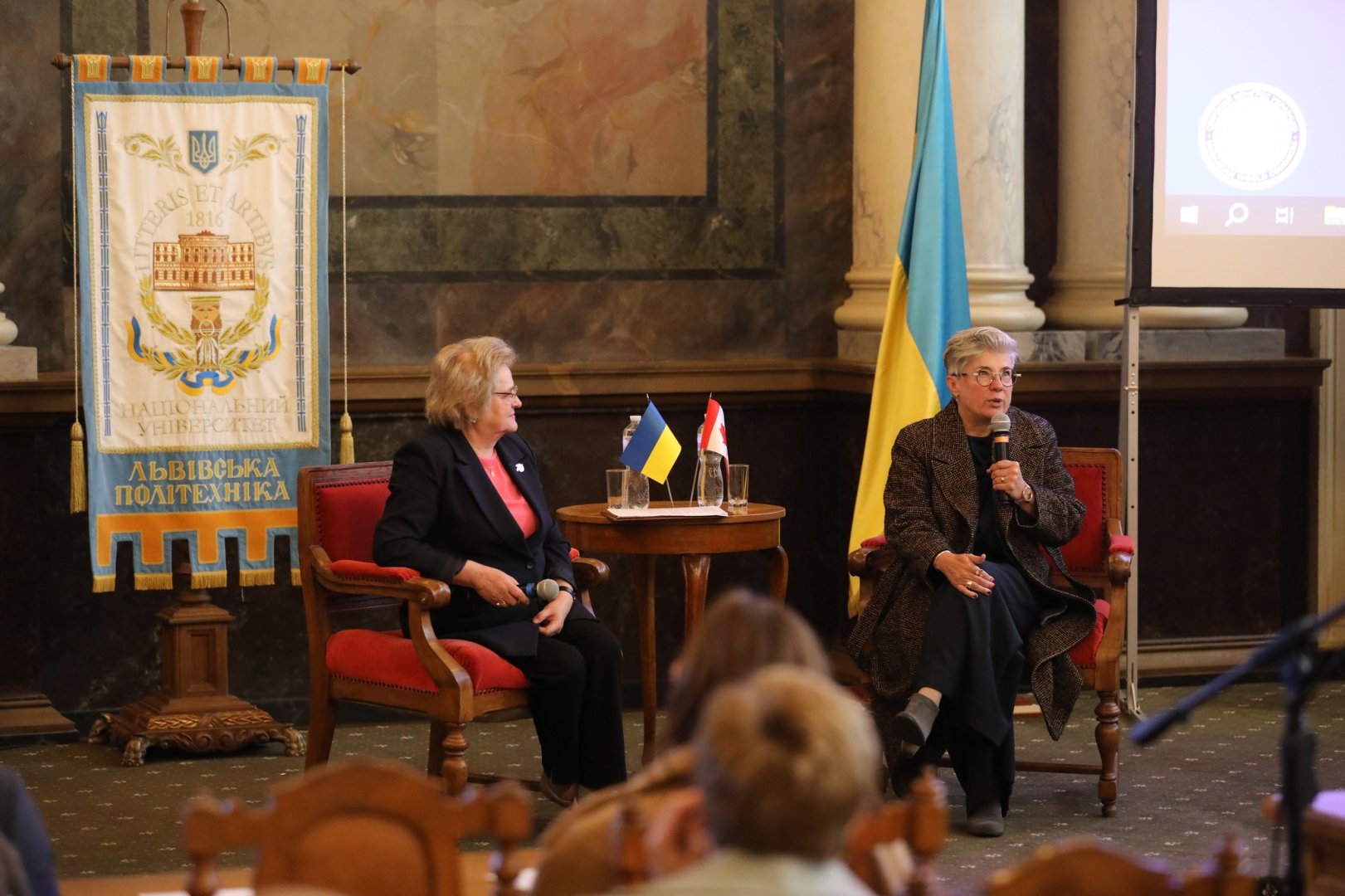 Iryna Kluczkowska, dyrektorka Międzynarodowego Instytutu Edukacji, Kultury i Związków z Diasporą Politechniki Lwowska. Gościną specjalną była Natalka Cmoc - Nadzwyczajna i Pełnomocna Ambasador Kanady w Ukrainie.