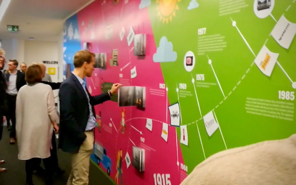 For the 150 years of Nestlé, ActiveMe has created an interactive wall in the headquarter in Bruxelles. The evolution as well as the different commercials of the brand during these 150 years is shown in augmented reality (AR), on a giant sticker with a timeline.